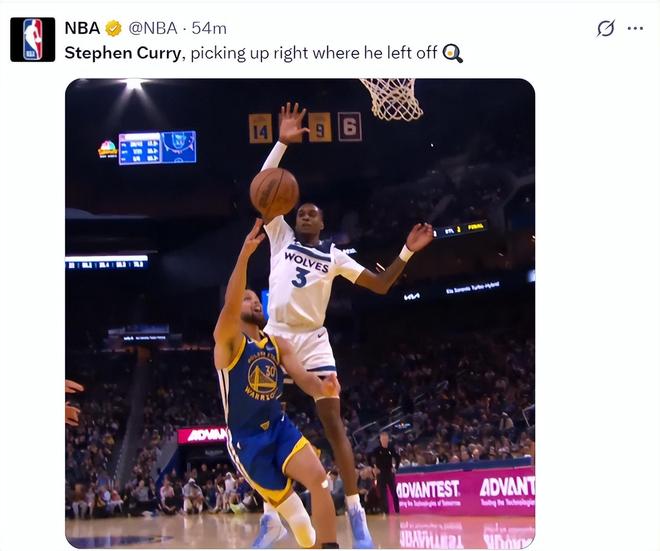 库里伤停五场比赛后复出,11月27日-12月13日也就是整整16天,但斯蒂芬的三分手感依旧令人咋舌,赛前他命中一个贯穿全场的超远三分球,这个球在天空中是一个弧线命中。