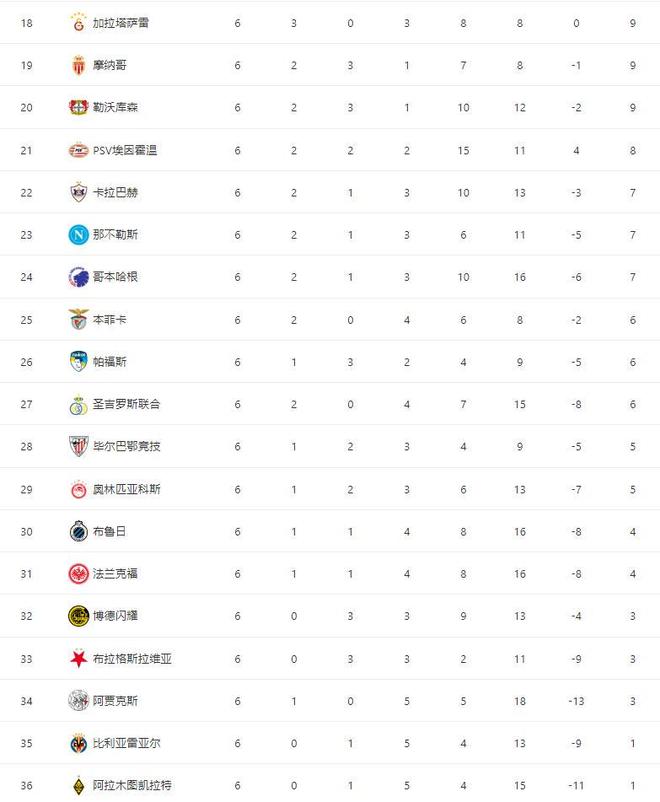 本赛季,比利亚雷亚尔稳居西甲前四,甚至有希望争冠,但到了欧冠赛场沦为送分童子,本轮面对哥本哈根爆出冷门,不仅开场2分钟丢球,还在第90分钟遭到了绝杀,最终2-3失利,开局6轮不胜,仅积1分跌至倒数第二。